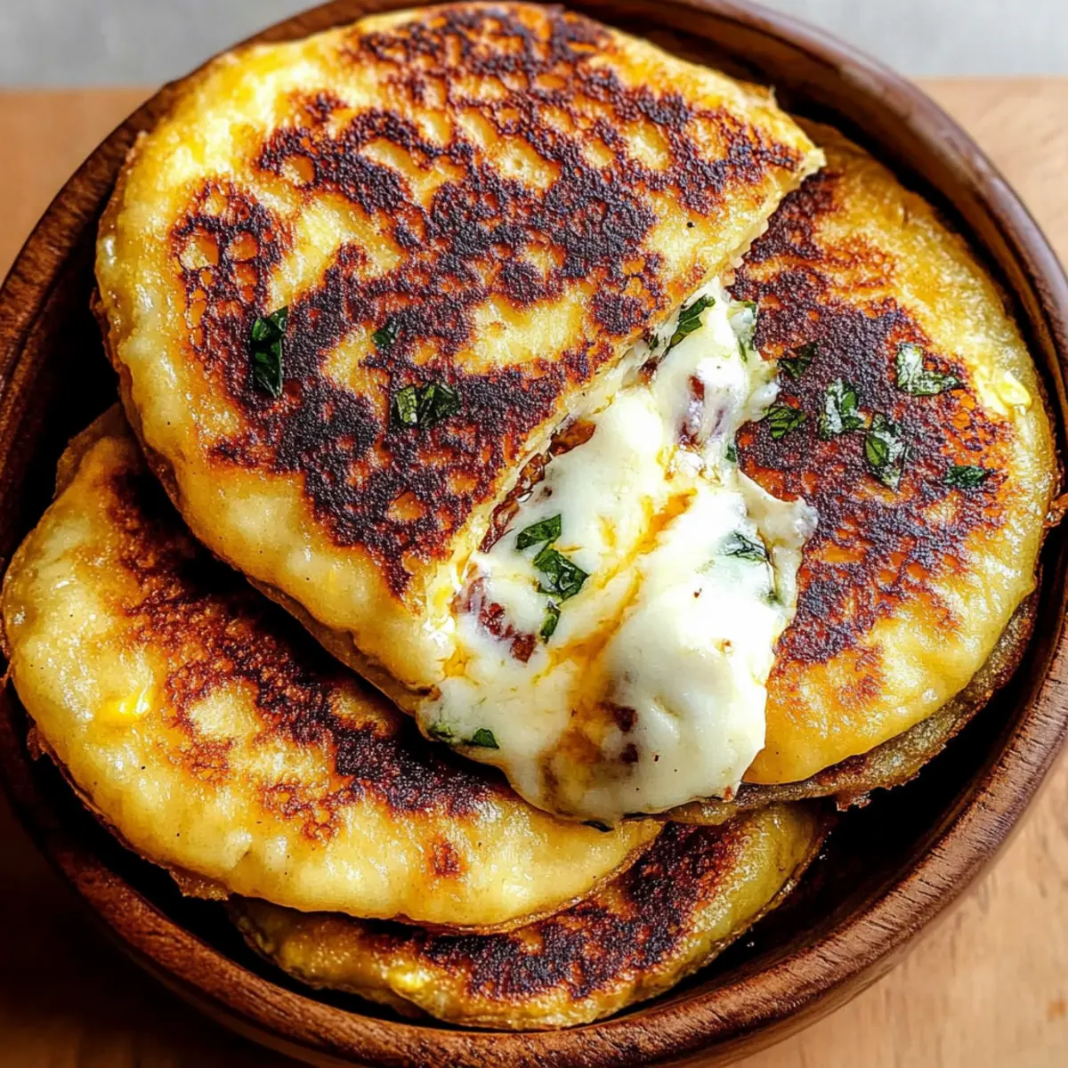 Cheesy Goodness: The oozing buffalo mozzarella filling adds a creamy richness that elevates the classic pancake experience to new levels.