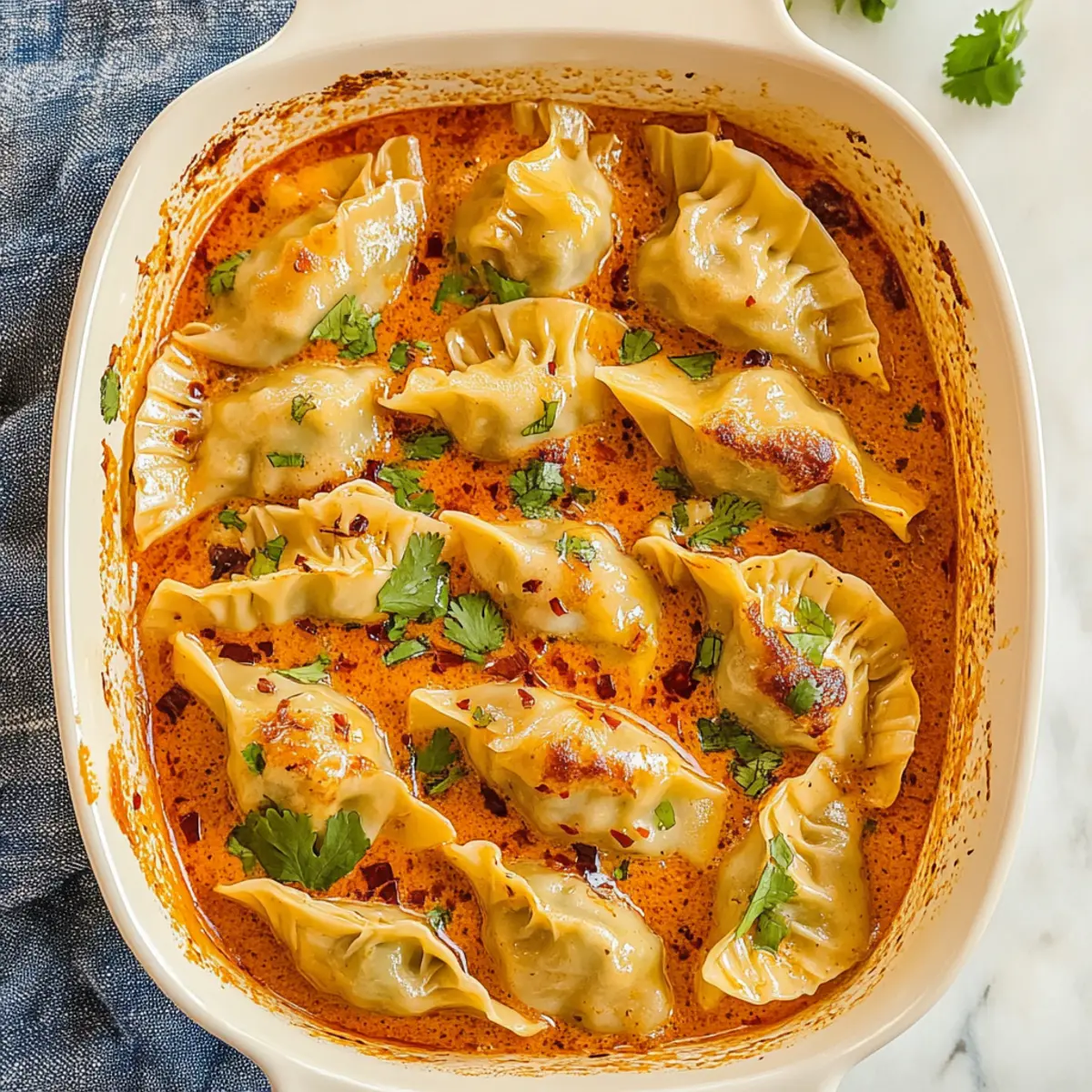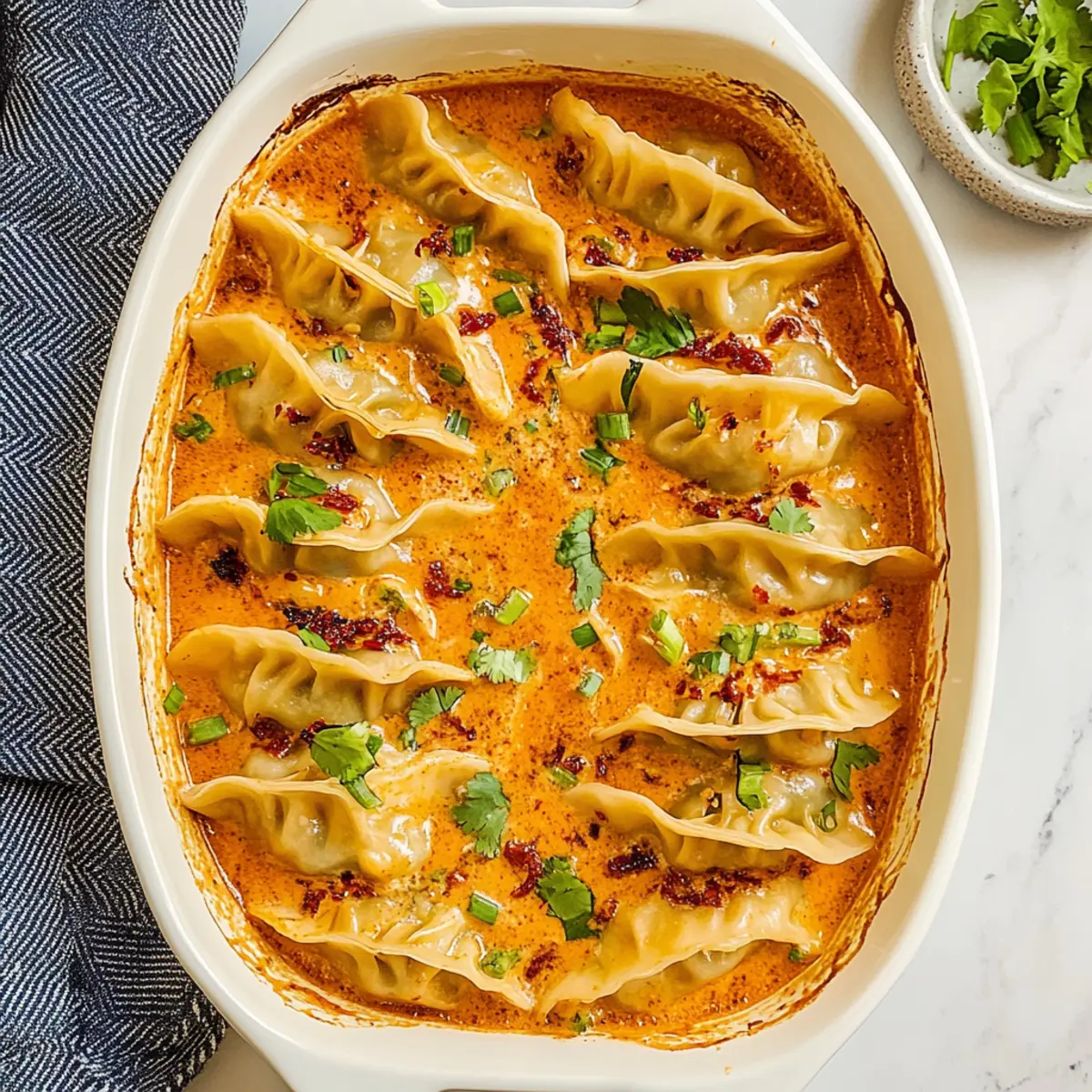 Absolutely! For this recipe, gyoza-style potstickers work best as they are tender and have a classic dumpling texture. However, any frozen dumplings available at your local store will do just fine, whether they’re chicken, veggie, or another filling. Just ensure they are fully cooked before adding them to the bake.