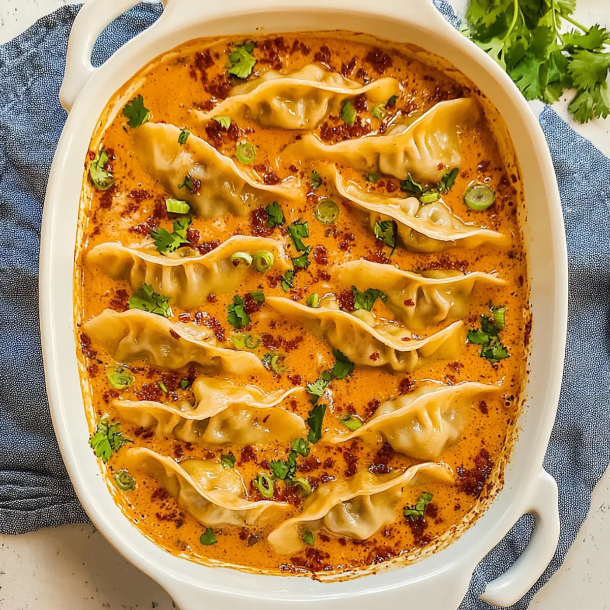 Viral Trader Joe's Dumpling Bake with Coconut Curry Sauce